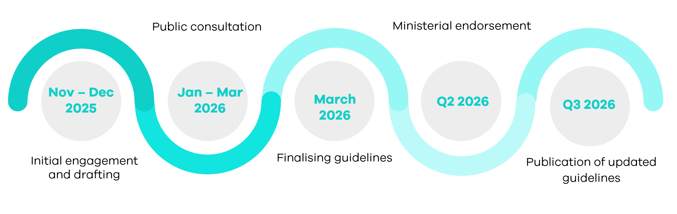Public consultation on an update to the guidelines is expected to commence early in 2026, with finalised guidelines ready for ministerial review in the second quarter of the year.